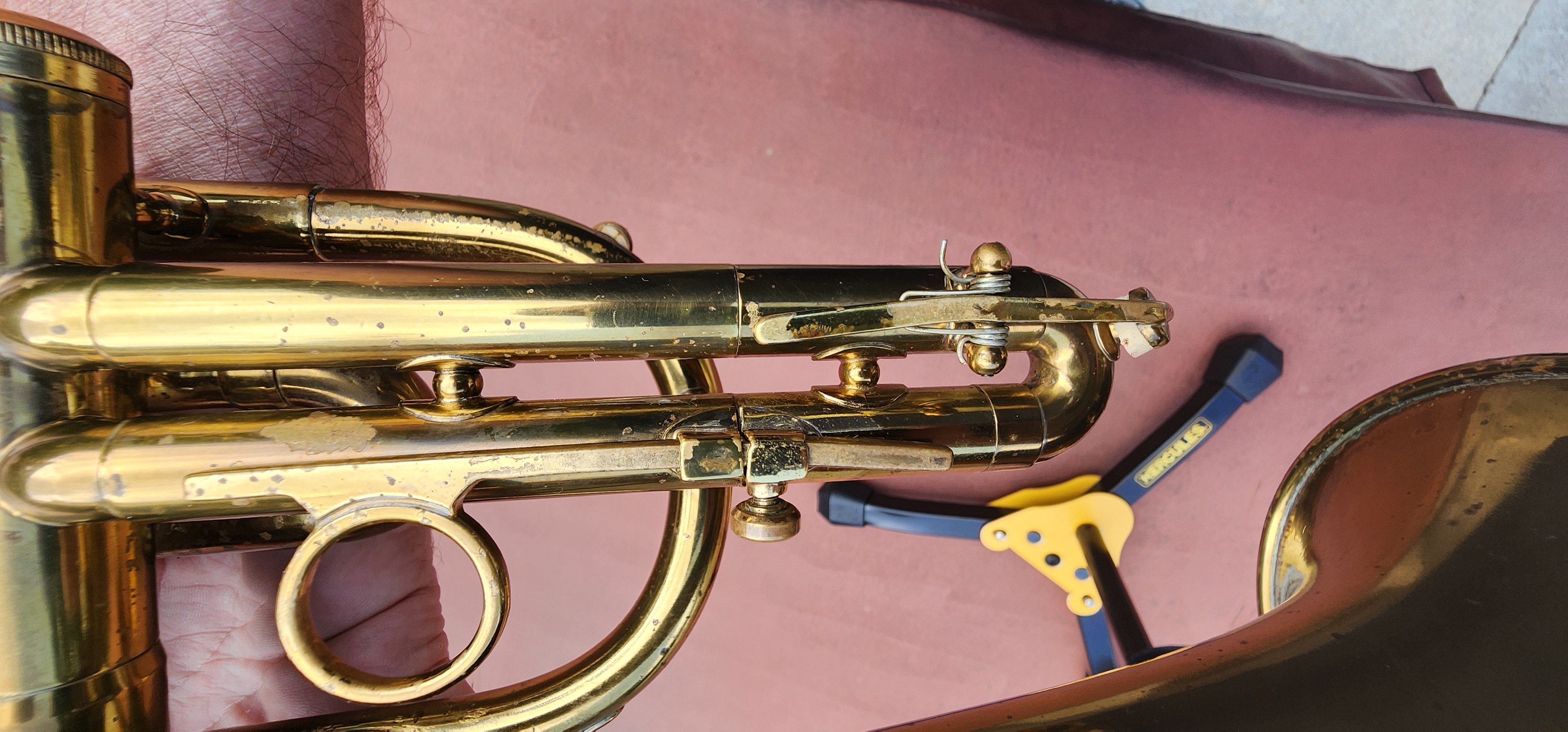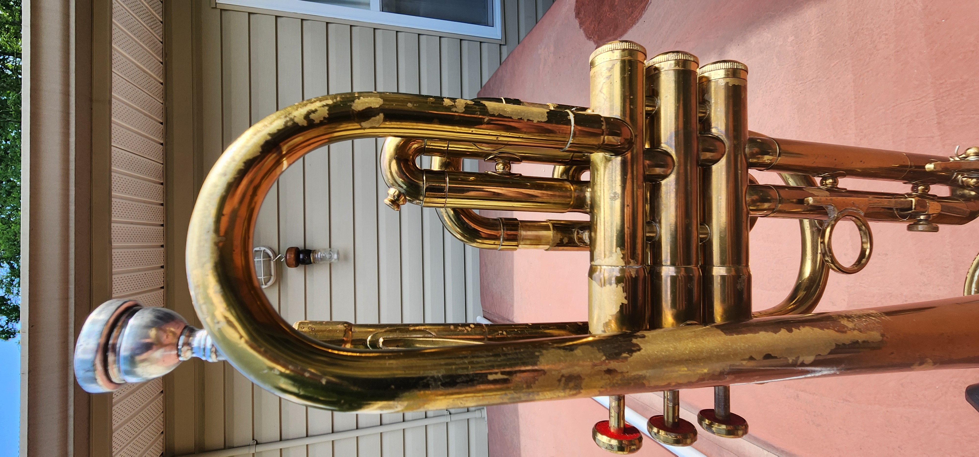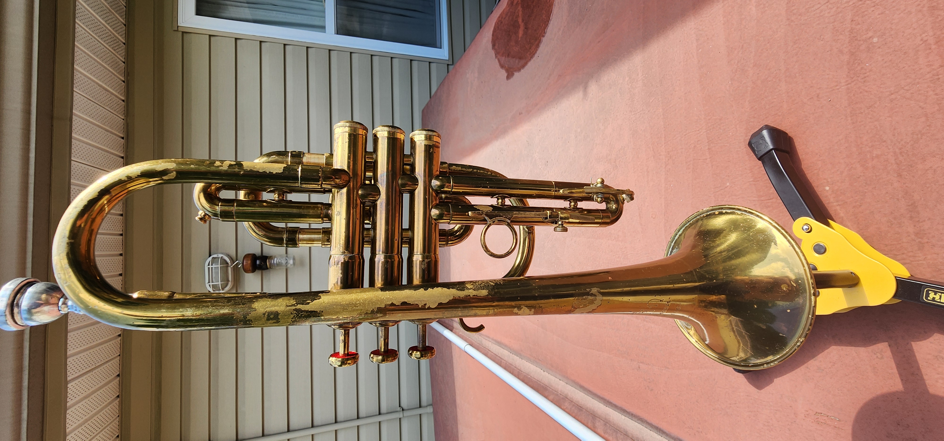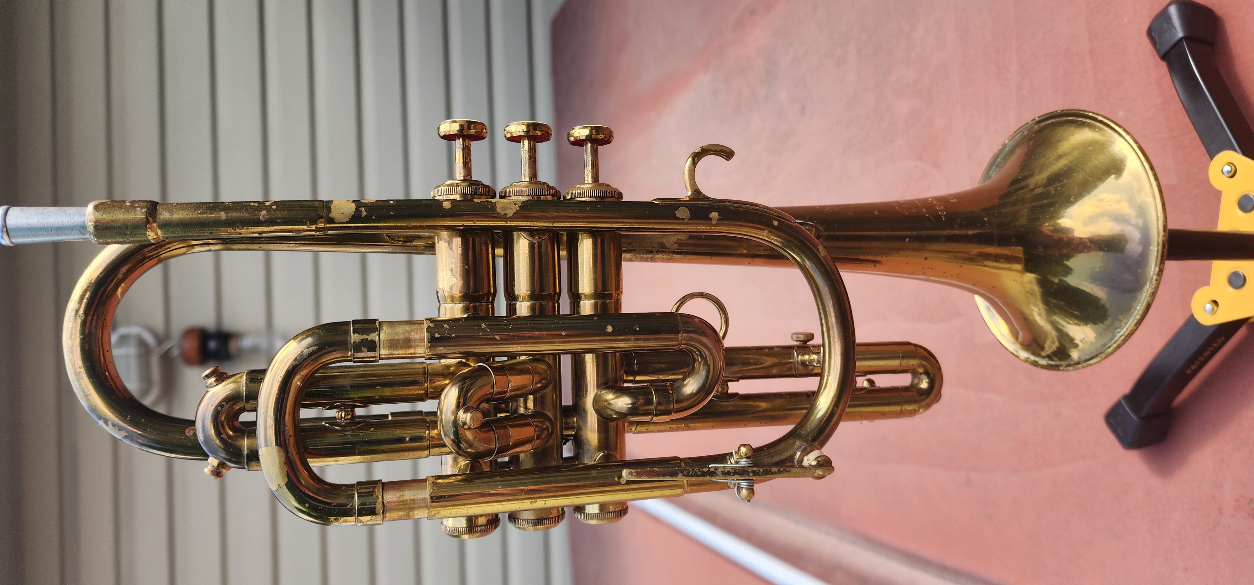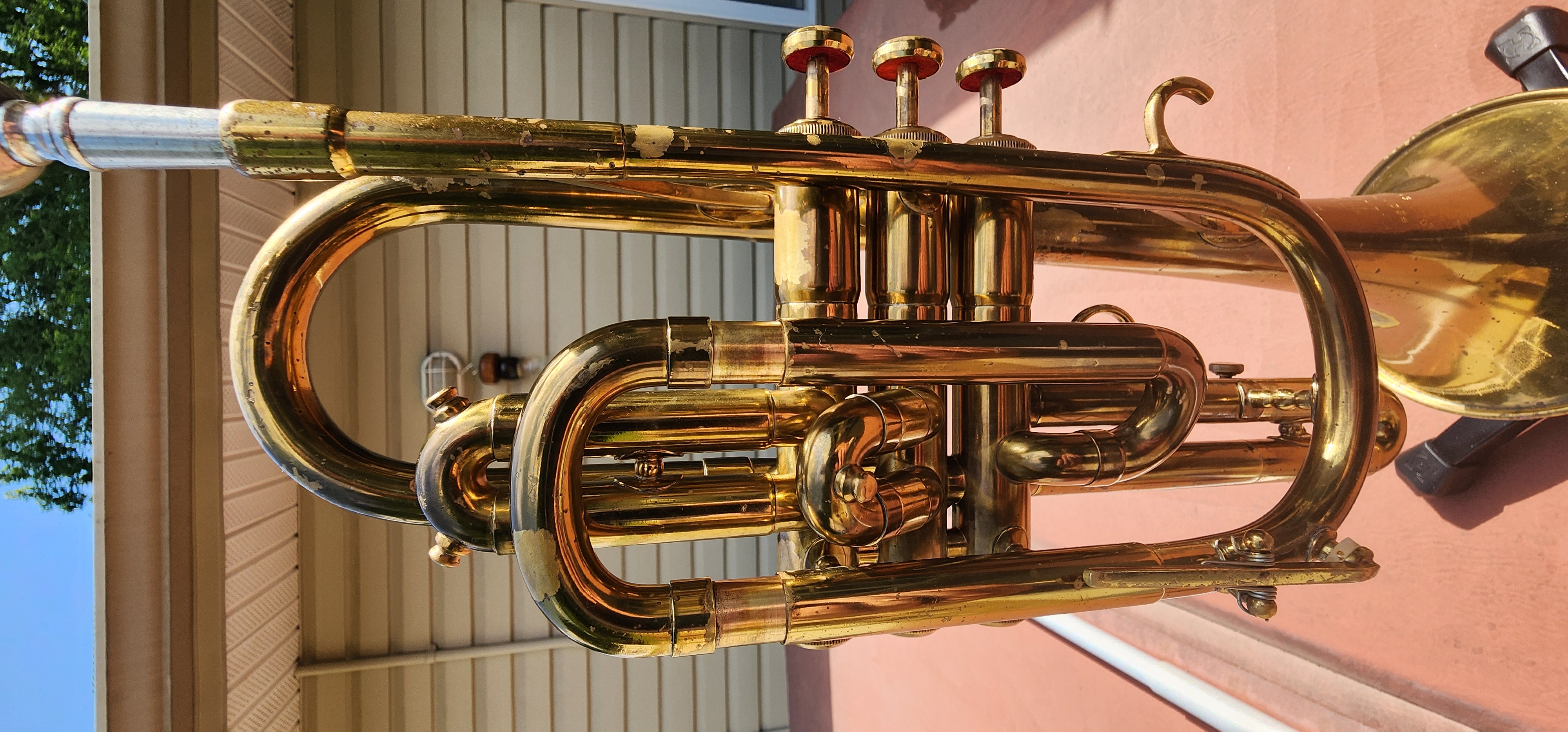 This cornet was recently chemical cleaned with new felts, spit valve corks and is ready to play.