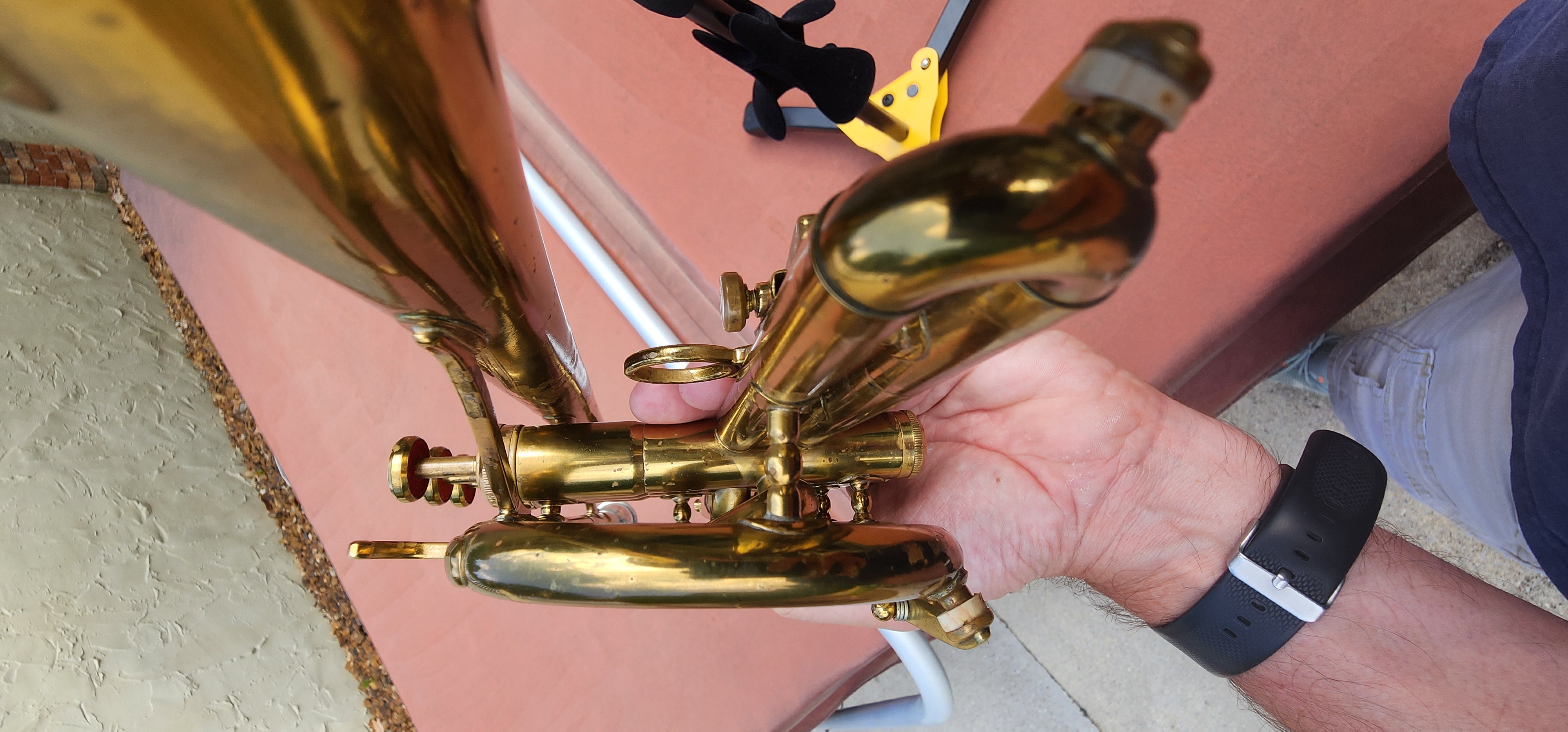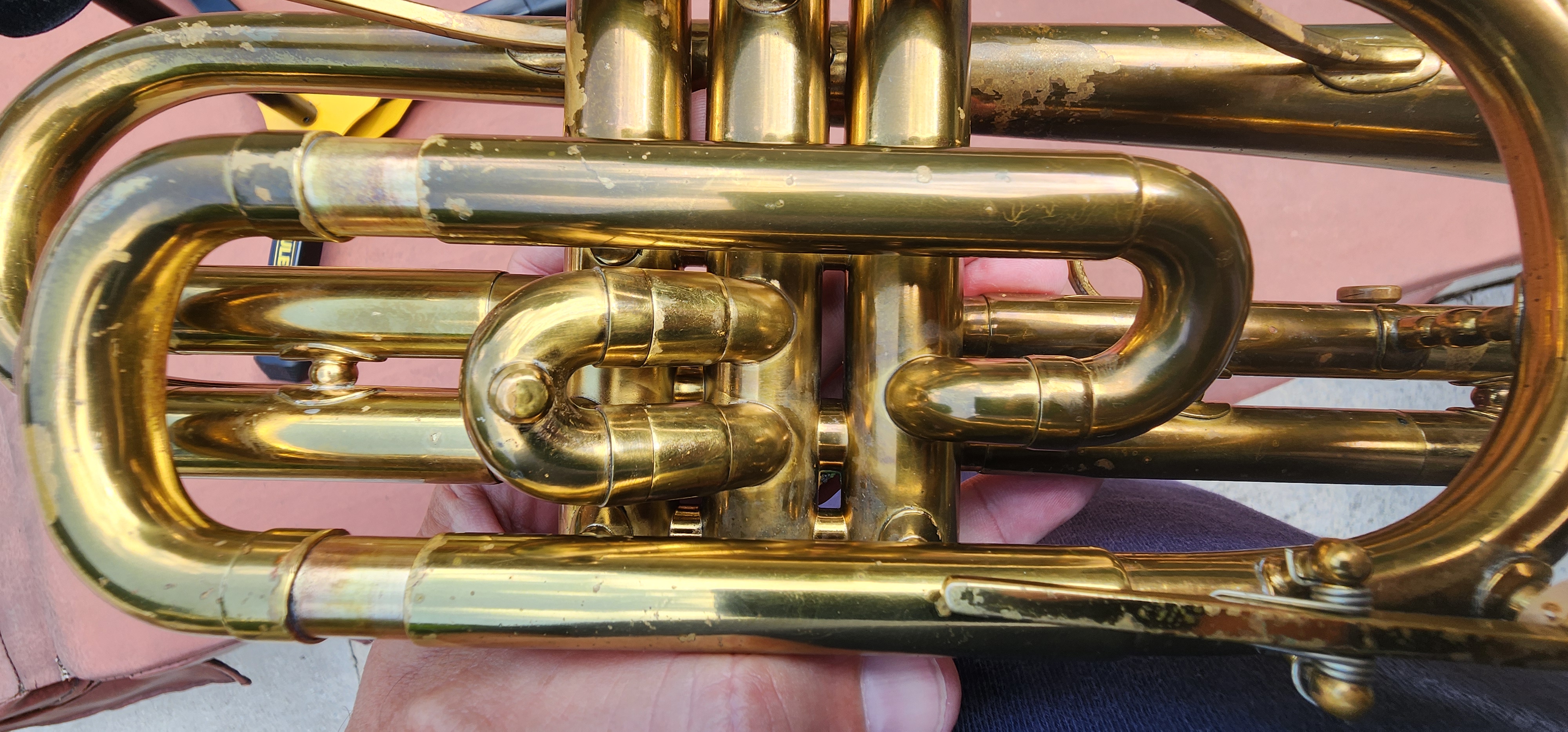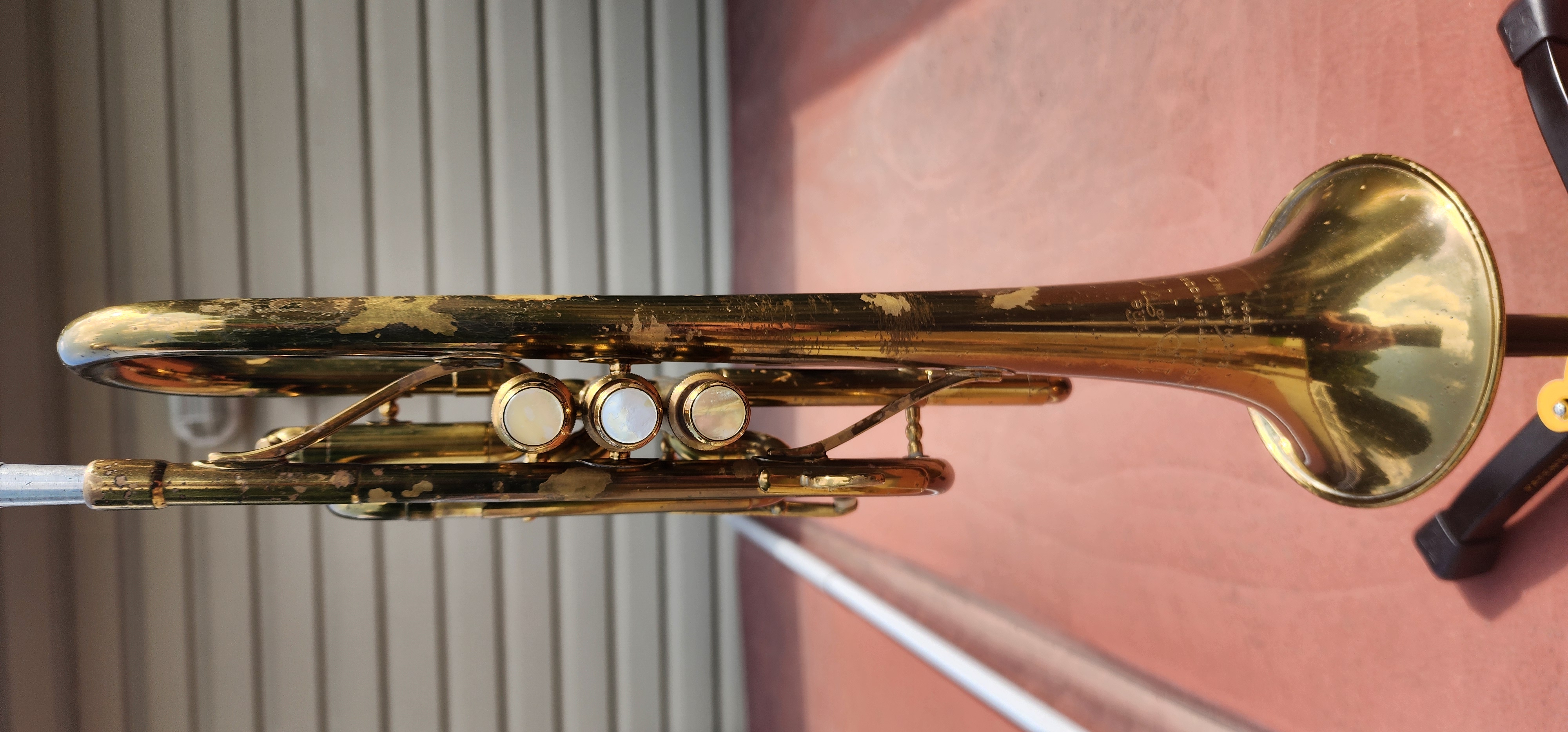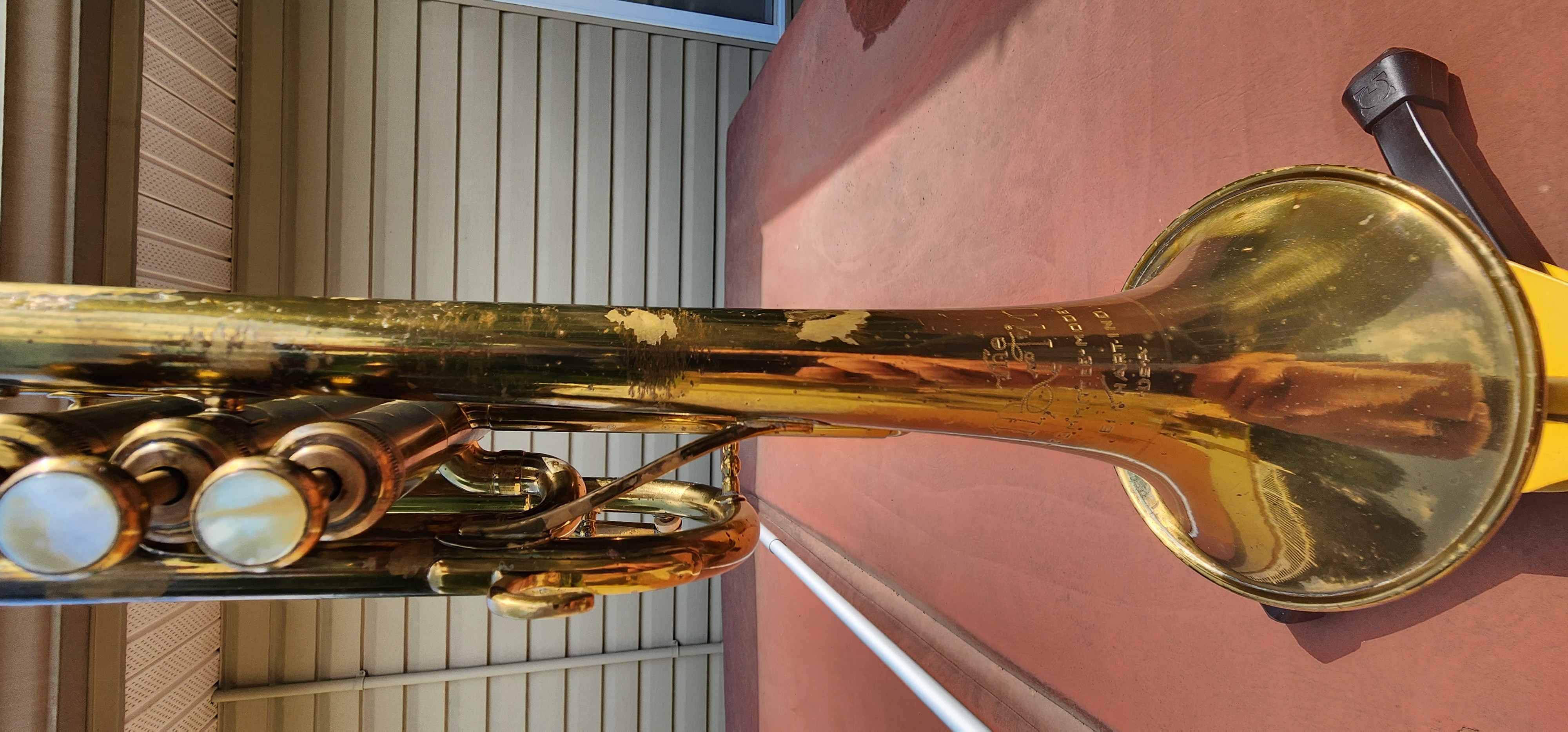 There are no signs of major repairs or soldering other than ding/dent removal from the bell.